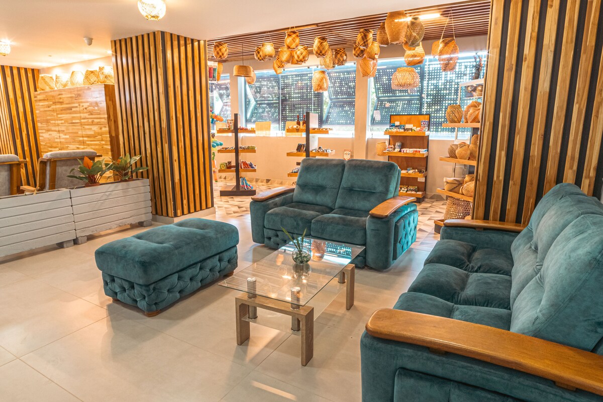 Hotel El Aeropuerto – Donde el confort se encuentra con la magia del Guaviare Somos el hotel más grande y moderno de la región, con amplios salones de eventos, gastronomía de autor, artesanías locales y un entorno que inspira. Disfruta de nuestro jardín, conecta con la naturaleza y vive la esencia de Guaviare en cada detalle. Dos restaurantes con sabores únicos: sushi, pastas, mariscos y cocina gourmet. Comprometidos con la conservación ambiental y la cultura local.