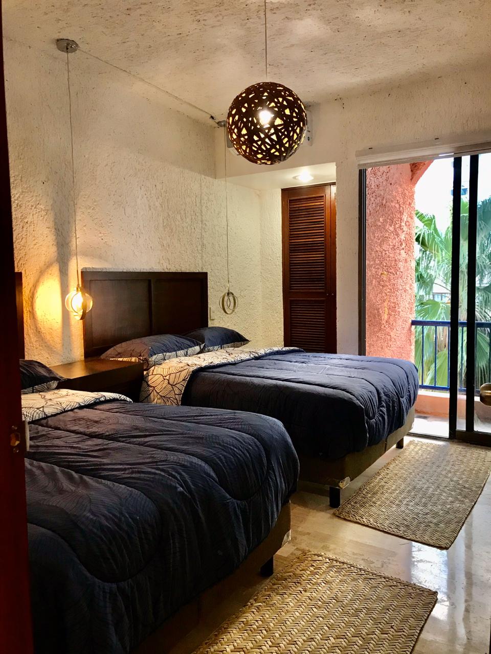 Recently renovated studio located right in the heart of the Cancun hotel zone, with a beautiful terrace and a breathless ocean view near by restaurants and night live fun activities. The studio has a modern touch with a beautiful terrace to spend time and enjoy the view and the ocean sounds with a cup of coffee, some wine or simply relax in the hammock. It has two queen size beds, a sofa type bed, a well equipped kitchenet and a dining table. It also has a flat screen tv and wifi service.