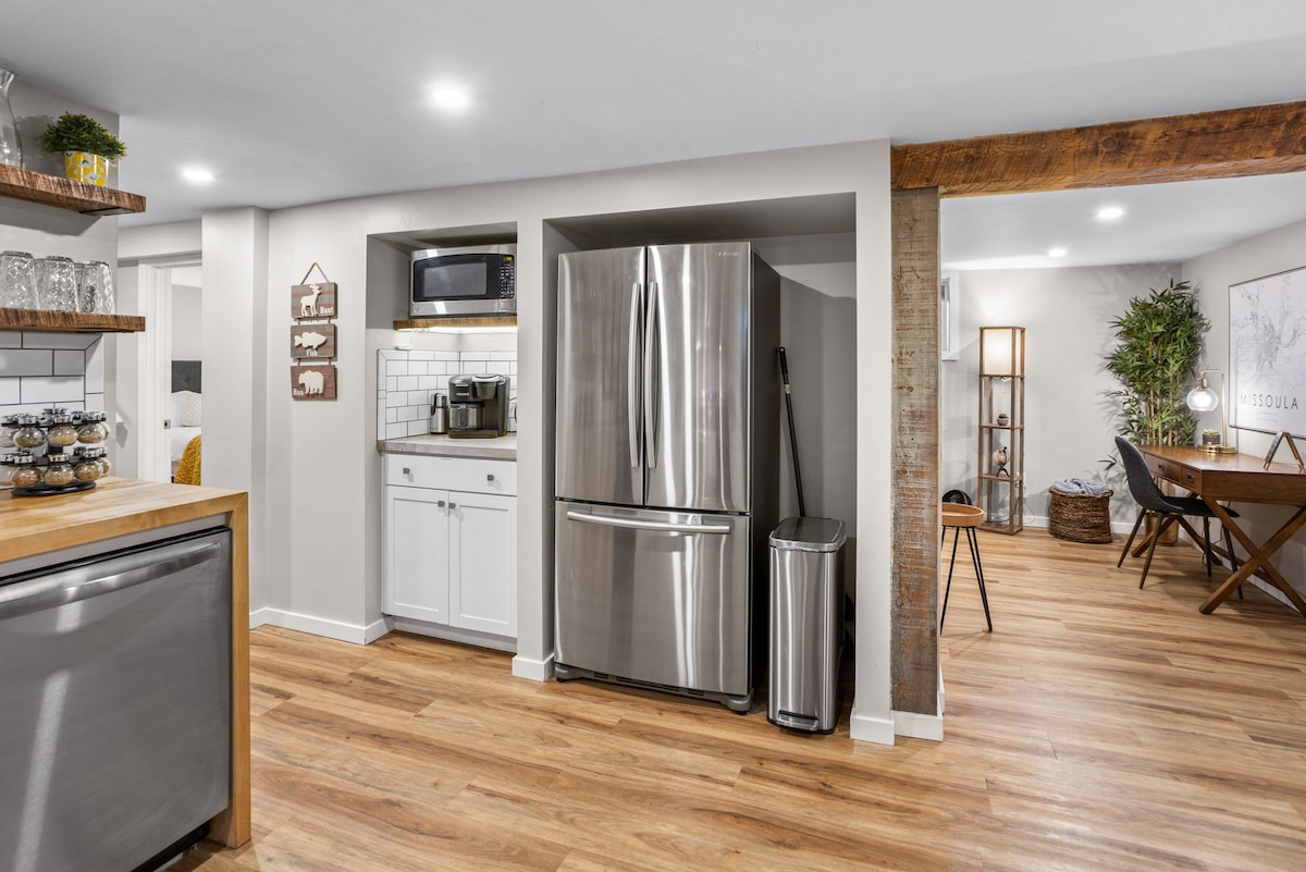 El Missoula Bungalow es la opción perfecta para aquellos que buscan un alquiler vacacional elegante y cómodo en Missoula. Ubicado a pocos minutos del centro de la ciudad. El interior de la casa ha sido decorado profesionalmente con un diseño de montaña moderno, creando un ambiente acogedor y agradable con wifi de alta velocidad. Esta acogedora casa ofrece una oficina privada, lo que la convierte en el espacio perfecto para trabajar a distancia. Tanto si viajas por negocios como por placer, te sentirás como en casa en este encantador espacio.