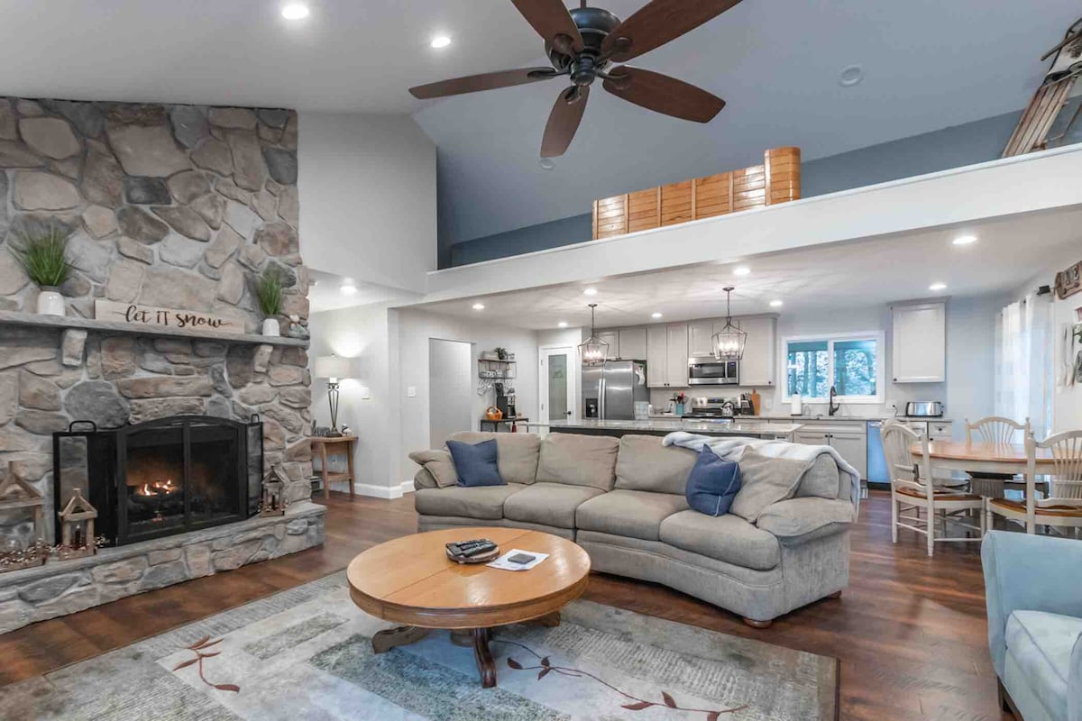 ¡La temporada de esquí/tubing está a la vuelta de la esquina! Escápate al "Eclipse", una moderna cabaña de inspiración escandinava ubicada en .5 acres con vistas a un sinfín de bosques. El Eclipse ofrece servicios cuidados, como una llamativa chimenea de gas, una divertida consola de arcade, golf de disco, etiqueta láser y un delicioso carrito de palomitas para las noches de cine. Relájate en el jacuzzi bajo las estrellas o disfruta del encanto en forma de A iluminado con LED. En 'Eclipse', todas las estrellas se alinean para una estancia verdaderamente mágica.