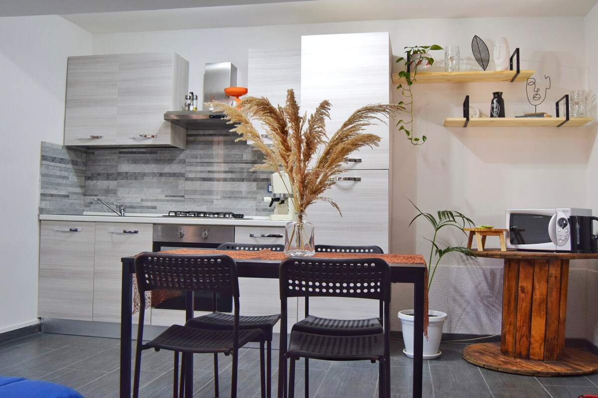 Centralidad y estilo en una maravillosa combinación para sus vacaciones en el corazón de Pompeya con vistas al Vesubio Estacionamiento gratuito con puerta automática. A 300 metros de las excavaciones, a 400 metros del santuario, un apartamento de unos 60 metros cuadrados, finamente renovado, con atención al detalle, tiene una cocina equipada, wifi gratuito, Netflix La genuina bienvenida de Ilaria y Gianluca será la guinda de tu estancia en la antigua ciudad Puedes hacer el registro sin restricción de horario, por tu cuenta