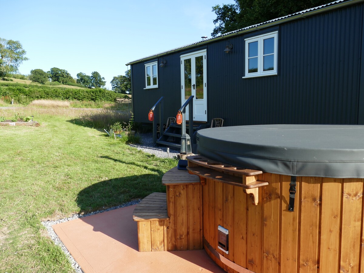 You'll love this unique and romantic escape. Enjoy an uninterrupted view of the Llandovery hills while sitting in a jacuzzi, sipping your favourite drink. Residing in a custom built shepherds hut, make use of a fully equipped kitchen & bathroom. Which of course, means no outdoor trips to the loo! Linen and towels are provided for every stay. Horses and dogs welcome - contact prior to booking Please note, Farm animals are on site and road noise in the day is possible.