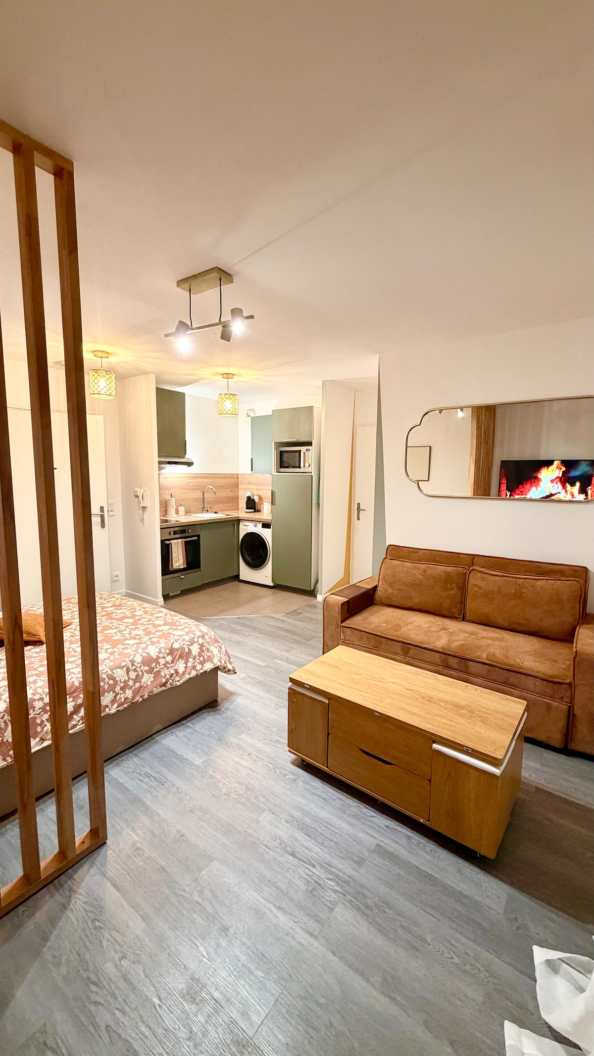 Bienvenue au Studio Lumière, un cocon lumineux et plein de charme au cœur de Lagny-sur-Marne. Poutres apparentes, carreaux de ciment et déco soignée créent une ambiance chaleureuse. Profitez d’une cuisine équipée, d’un espace salon confortable et d’une literie de qualité. À 3 min des bords de Marne, proche commerces et gare (5 minutes), à 20 min de Disney et 25 min de Paris. Idéal pour couples, pros ou escapades détente !