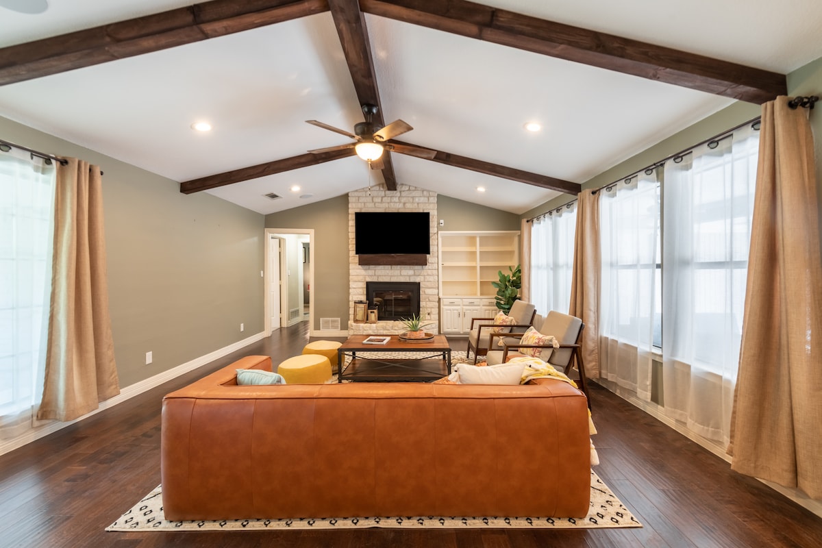Ven a crear recuerdos en esta casa única y apta para familias en Carrollton, Texas. ¡Este alojamiento bellamente renovado está lleno de servicios para todos! El garaje se ha convertido en una sala de juegos con capacidades de aire acondicionado/calefacción para que puedas jugar al billar, al ping pong y disfrutar de la televisión con amigos y familiares durante todo el año. También tenemos un increíble patio trasero que tiene un Putting Green, jacuzzi, chimenea, TV al aire libre y un montón de asientos para que todos se sienten y se relajen. Número DE permiso para estadías de corta duración - P-00007