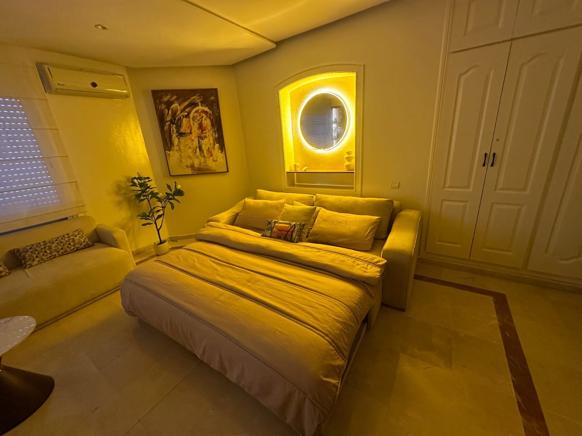 Luxurious and spacious studio in the center of near the Aeria mall, Morocco mall, Casa Finance city, Anfa park, Center of business Technopark, and 10 minutes from the Ain Diab beach Super equipped sunny, located in the prestigious CFC district A large living room opens onto a beautiful terrace south facing enjoying of the ideal casa town to enjoy moments of sunny relaxation Enjoy the private gardens play areas for children and a sports hall heated jacuzzi spa available all year round very sunny