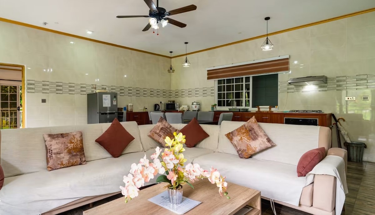 Welcome to Effie’s Mountain View Villas! Surrounded by a beautiful tropical garden, this charming self-catering accommodation lies on the east coast of Mahé, in Le Rocher. This paradise-like estate offers a furnished terrace that is ideal for relaxing in peace and quiet. Meanwhile, the central location between the airport and the capital city, Victoria, is ideal. Airport, Eden island and port are only 7 minutes drive!