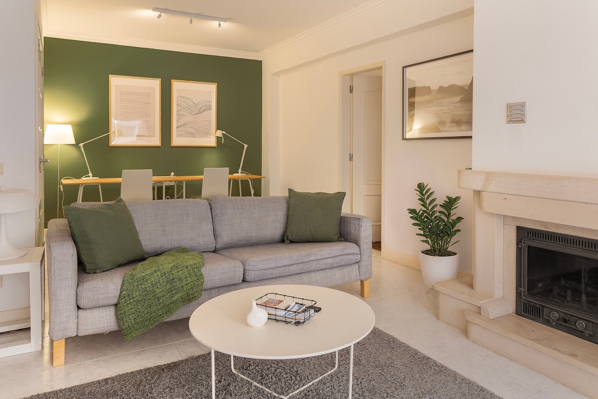 Bright and welcoming apartment in Cascais, thoughtfully styled for comfort and longer stays. Features a cozy living room, a dedicated workspace with two desks, fast 500 Mbps fiber internet, a fully equipped kitchen and a sunny, quiet balcony. Set in a convenient residential area, just minutes from the oceanfront bike lane, close to shops, cafés and public transport, with easy access to the beach and Cascais historic center.