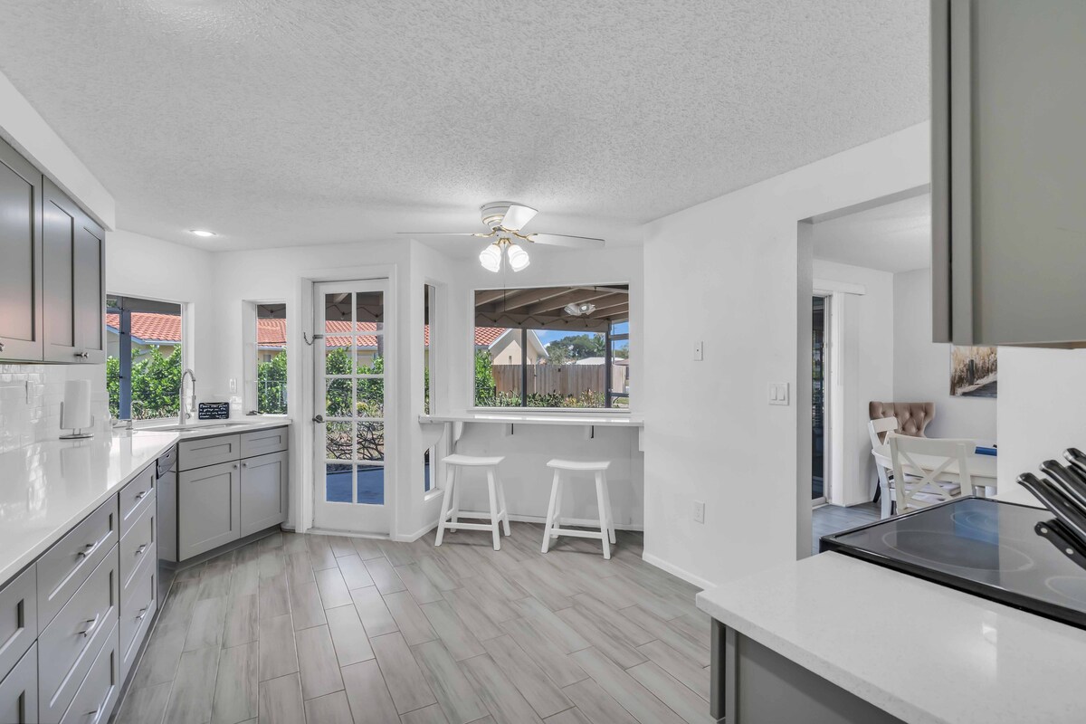 ¡Bienvenido a tu retiro de verano en la playa Sunset! ¡Es una propiedad nueva, recién anunciada! A solo 3 minutos en coche de Nokomis Public y muy cerca de Shark Tooth Beach, donde puedes recoger algunos dientes de tiburón. Los restaurantes frente al mar están a pocos minutos, al igual que el Casey Key Gulf Club. La casa ofrece la combinación perfecta de comodidad moderna. Cocina totalmente equipada, cómodos sofás y camas. ¡El ambiente limpio, luminoso y espacioso del interior y los hermosos alrededores del exterior hacen que esta estancia sea perfecta!