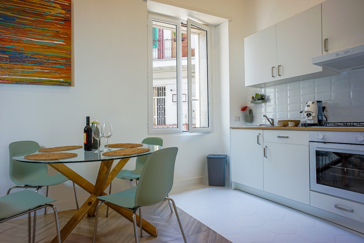 Luxury apartment: a combination of classic elegance and modernity, just renovated with JACUZZI and PRIVATE ROOFTOP of 90mq where you can admire the volcano Vesuvius. Located in a historical building on the 3rd floor without elevator in the heart of the old town, you can reach everything by walking. WiFi, PrimeVideo, Nespresso and luggage storage for FREE Points of interest • 2 min Duomo • 4 min Underground Naples • 6 min Metro L1 & L2 • 5 min Train Station • 10 min Harbour