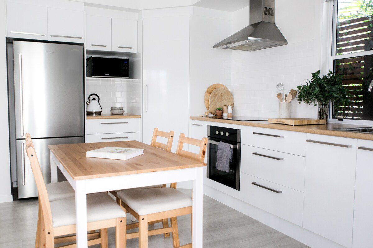 Light, modern 1 bedroom granny flat with separate entrance. 8 minute walk to the beach. Sleeps 2 with 1 queen bed and one sofa bed for kidsFully equipped kitchen, double vanity bathroom with large shower, walk in robe, Netflix and wifi. Lovely deck to relax on or enjoy a meal outdoors. Within walking distance to shops, cafes, parks and beach. Perfect for a weekend away or for longer stays. We welcome small, non shedding dogs only up to 8kg. This property is not suitable for bigger dogs and pets