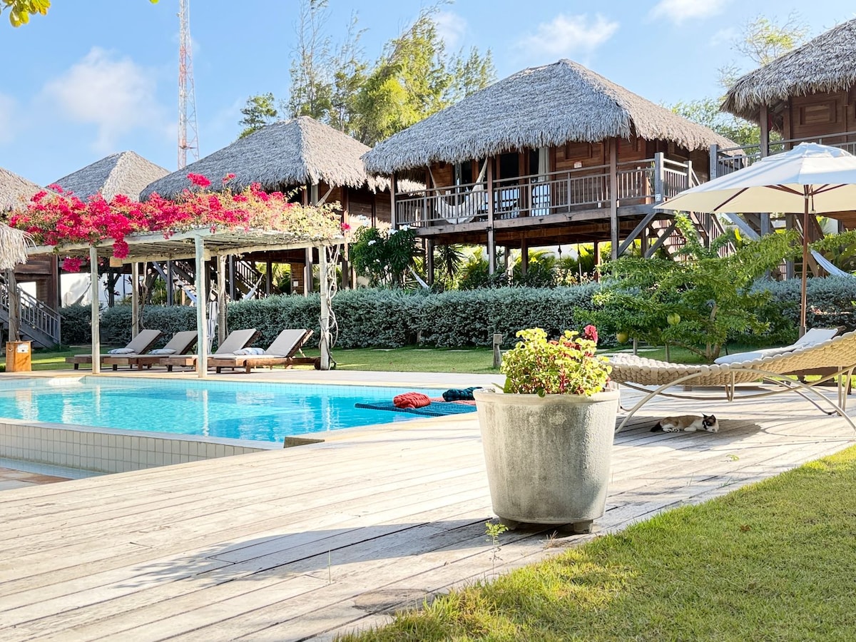 A Pousada Casa Caju Bangalows está localizada em Cumbuco, a apenas 200m da praia, oferecendo conforto e tranquilidade. Nossos bangalôs são aconchegantes, com varanda e bela vista, equipados com ar-condicionado, Wi-Fi gratuito, TV com canais e streaming, frigobar, roupa de cama e banheiro privativo completo. A pousada conta com piscina ao ar livre, estacionamento e café da manhã. O bangalô acomoda até 3 pessoas, com 1 cama de casal e 1 de solteiro, ideal para relaxar e aproveitar!