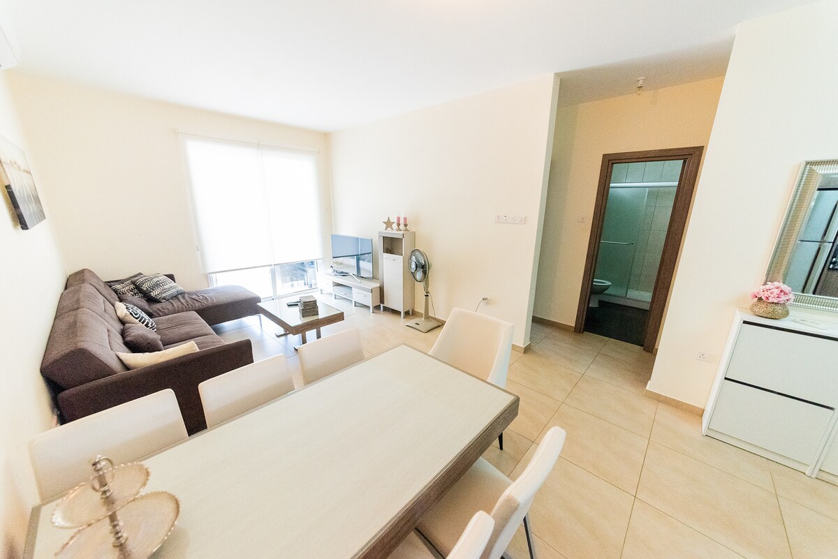 Esta es una perla increíble del North Kyprocess. Desde el apartamento hay 2 minutos a pie de una preciosa playa de arena,fantástico restaurante, zona de piscina con toboganes acuáticos, bar en la piscina,mercado,chiringuito, deportes acuáticos y hermosa naturaleza con preciosos senderos para caminar. En el complejo de playa Thalassa tienes todo lo que necesitas en un lugar con actividades como waterarobic, pilates, yoga, actividades infantiles, cine al aire libre, noche de barbacoa, + actividades div para todas las edades. Apartamento estupendo y espacioso