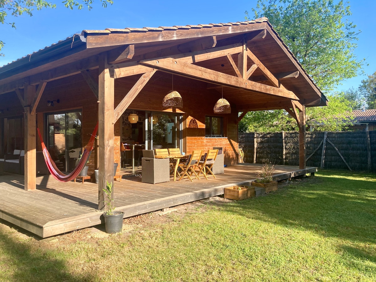Casa de madera elegante y acogedora a 5 minutos de la playa y del puerto