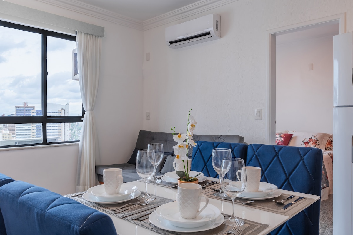 Excelente apartamento en la mejor zona de Fortaleza. Estarás muy cerca de Beira Mar, a la altura de la feria. Tendrás todo lo que necesitas a tu alrededor, sin necesidad de desplazarte. Excelente relación calidad-precio. El apartamento ha sido completamente renovado y cuenta con muebles nuevos y utensilios esenciales para hacer que tu estancia sea perfecta. Si desea combinar su vista al mar con el trabajo en casa, disponemos de internet de alta velocidad y buena conexión.