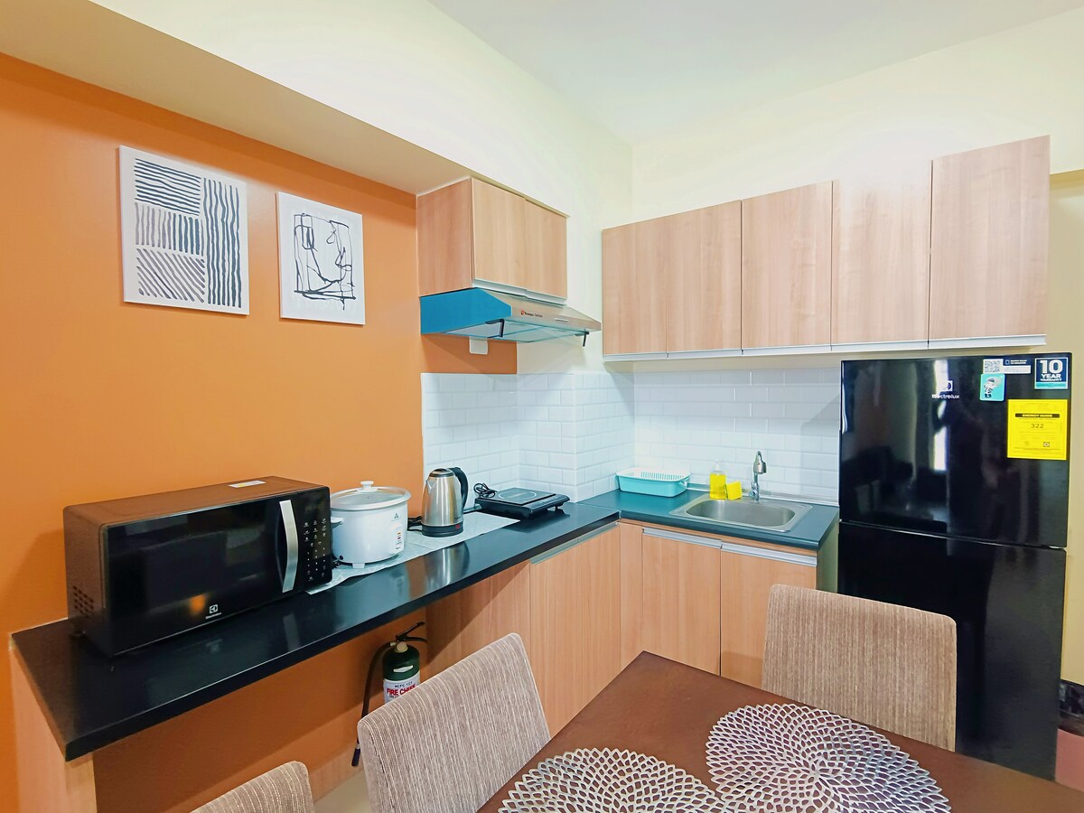 - Spacious 1 BR unit can comfortably accommodate up to 6 Guests - 1 Double size bed in the Bedroom, and 2 Double size Sofabad in the living room. - Super-fast Fiber Optic Internet Connection up to 450++ Mbps Speed - 42” Smart TV with Disney+, Amazon Prime Video, Max, YouTube and more - 3 Swimming Pools - Full kitchen with cooking wares - Dining Table with 6 Chairs - Walking distance to Ayala Mall Central Bloc, Restaurants, Convenient stores, Coffee Shops, Sports Bar and more