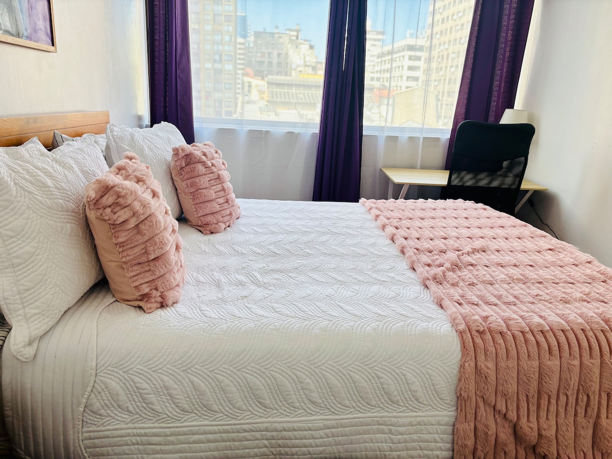 Loft luminoso con vistas, cerca del Metro| Stgo.