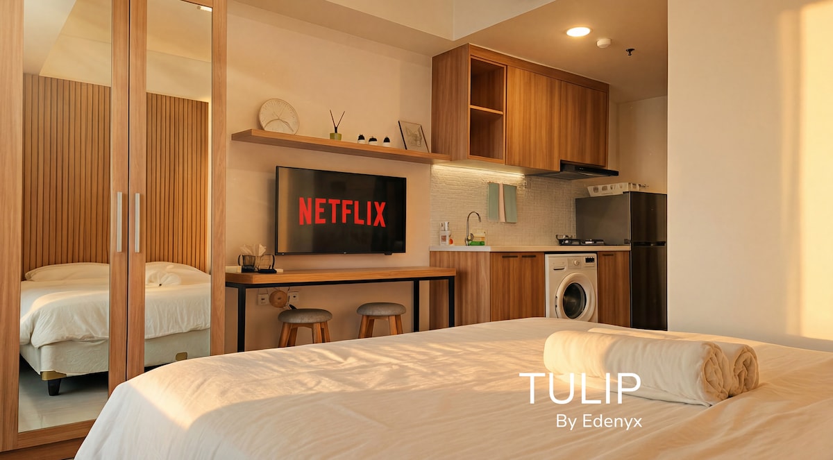 Un espacioso y acogedor apartamento de 1 dormitorio con sala de estar y balcón en Citralake Suites, la escapada ideal junto al lago en el oeste de Yakarta. Convenientemente ubicado a pocos minutos del aeropuerto, PIK, Puri Indah y Sunset Avenue, es fácil explorar la ciudad. Salga y estará a solo 1 minuto a pie de Ciffest, una animada zona de restaurantes con muchas opciones gastronómicas, supermercados y cajeros automáticos. Nuestra unidad de 1 dormitorio ofrece un espacio lujoso y cómodo para un máximo de 3 huéspedes, con cocina americana, wifi gratuito y Netflix.