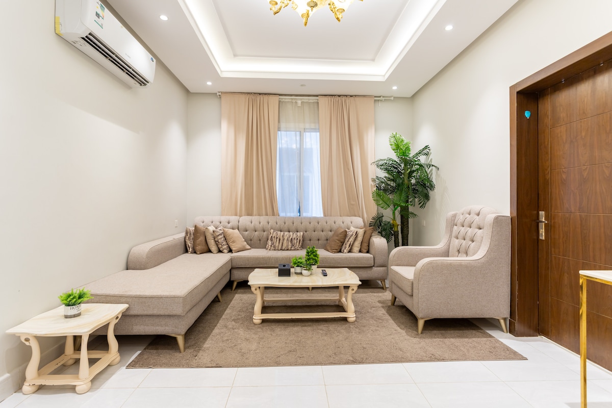 ¡Bienvenido a nuestro encantador apartamento de 1 dormitorio y sala de estar en Yeda! Relájate en este lugar recién amueblado y céntrico que ofrece fácil acceso a los principales lugares de interés de Yeda, con proximidad a: - Hospital Alhabib (7 min) - Centro comercial Andalus (7 min) - Centro comercial Alsalam (7 min) - Universidad Rey Abdulaziz (5 min) - Estación de tren de Haramain (12 min). Ya sea que estés aquí por negocios o por placer, nuestra elegante unidad te ofrecerá una estancia inolvidable.