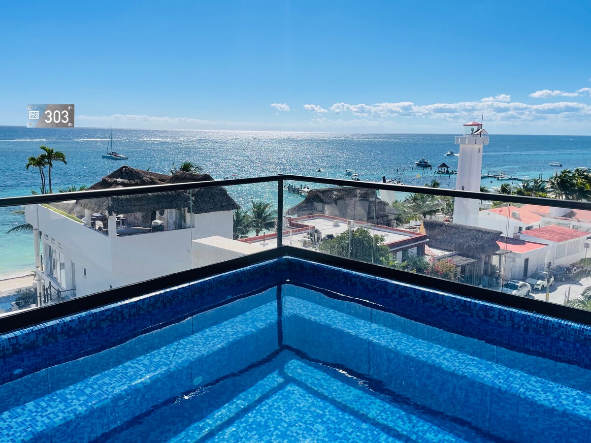Modern Ocean View Apartment in the heart of the town. Everything you want in 5 min walking distance from the beach to the main plaza with its restaurantes, bars, and a supermarket. Enjoy the views of the crystal blue Caribbean Sea from your bed or private balcony. Swim in the rooftop pool, relax on the sun lounger or socialize at the common area. Visit the beautiful beach & enjoy a cozy apartment with all the amenities for your comfort like fully equipped kitchen, TV, and complimentary WI-FI.