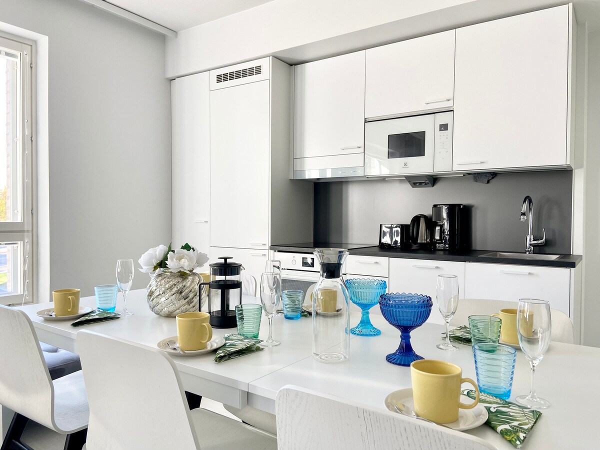 Enjoy a comfortable stay in this bright, modern two-bedroom apartment in a prime location in Jyväskylä. Start your mornings with stunning lake views from the private balcony and after a day of exploring, relax and recharge in your own private sauna. The apartment comfortably sleeps up to 5 guests and includes free on-site parking for added convenience. With the best location near the city center, this apartment offers an ideal base for both leisure and business stays year-round.