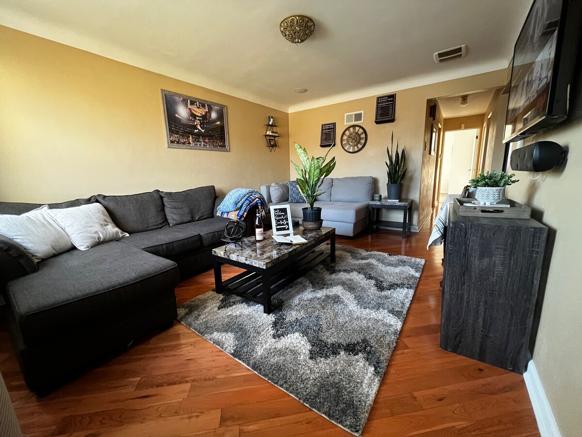 Casa rancho de 3 dormitorios y 2 baños en un callejón sin salida tranquilo. Gran vallado en el patio trasero para que los niños, el perro y los adultos jueguen durante el día y luego se relajen junto al fuego por la noche. A poca distancia a pie (50 pies) del bar/restaurante con entrada privada. A 15 millas (25 minutos) del centro de Chicago. Y para ustedes, las parejas, vuelvan a casa después de su ajetreado día, siéntense y relájense en la bañera de hidromasaje de 8 chorros que os acomodará cómodamente a los dos.