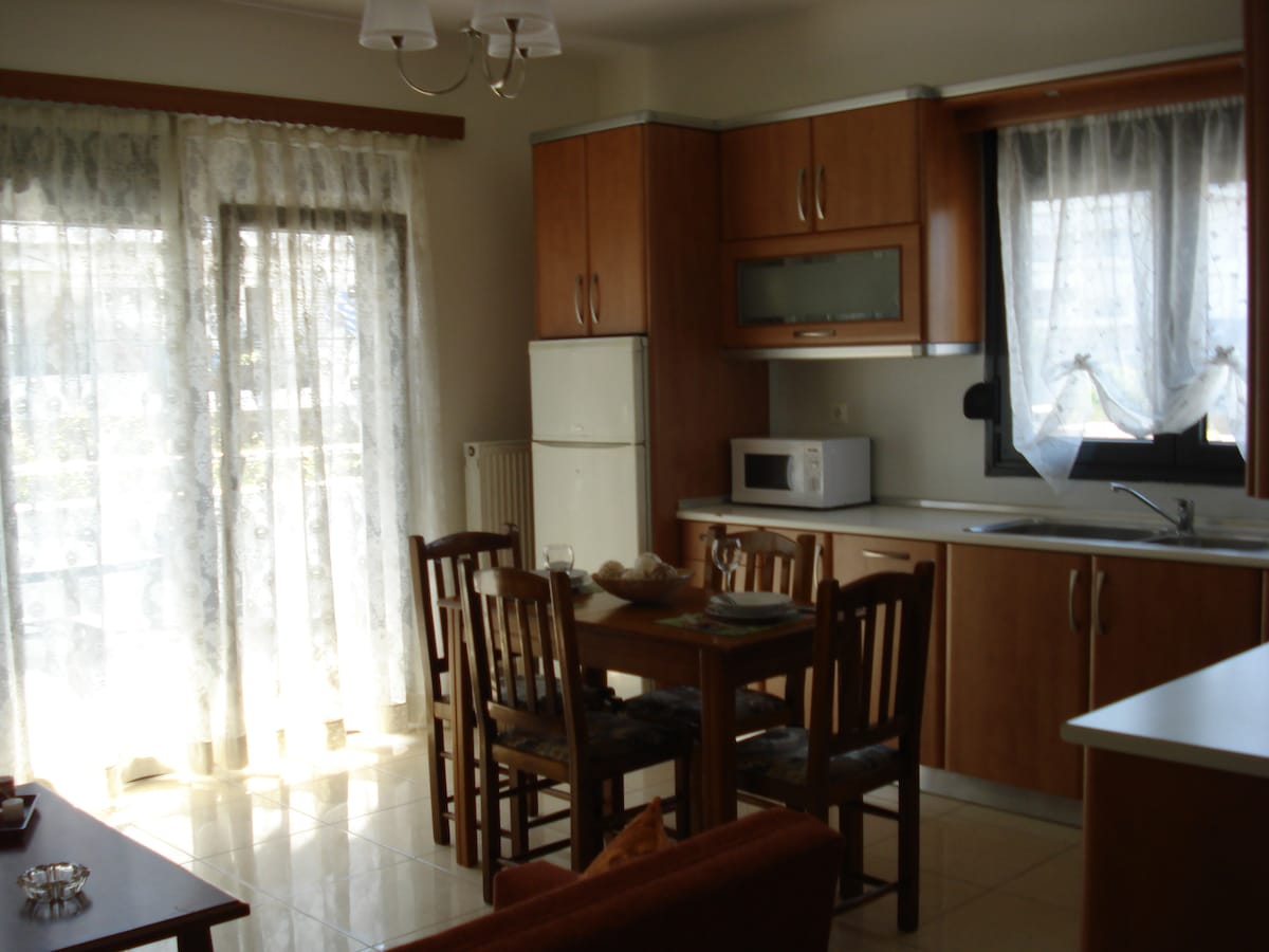 Ubicado en el último piso de una casa privada, inundada durante todo el día en un vecindario tranquilo. Hay acceso a todas las playas de CHALKIDIKI. Está a solo 5 km de las playas más cercanas de Siviris,Kallithea y Athitos. También a 85 km del aeropuerto de Macedonia de Thessalonici.