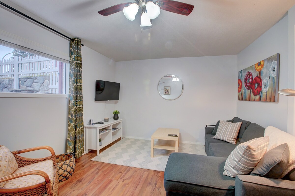 Una acogedora casa de carruajes ofrece una escapada tranquila a Kelowna. En el interior, encontrarás una nueva y cómoda cama tamaño queen privada para un sueño reparador, un nuevo y acogedor sofá cama y una cocina moderna totalmente amueblada para cocinar en casa. Sal a disfrutar de la tranquila piscina (cerca), relájate en un jacuzzi espumoso, perfecto para desconectar de día o de noche. Un refugio acogedor, sencillo, elegante y sereno. Ubicación: Mission Greenway a unos pasos Big White a 45 minutos Centro comercial a 5 minutos Campo de golf a 10 minutos Bodegas a 10 minutos