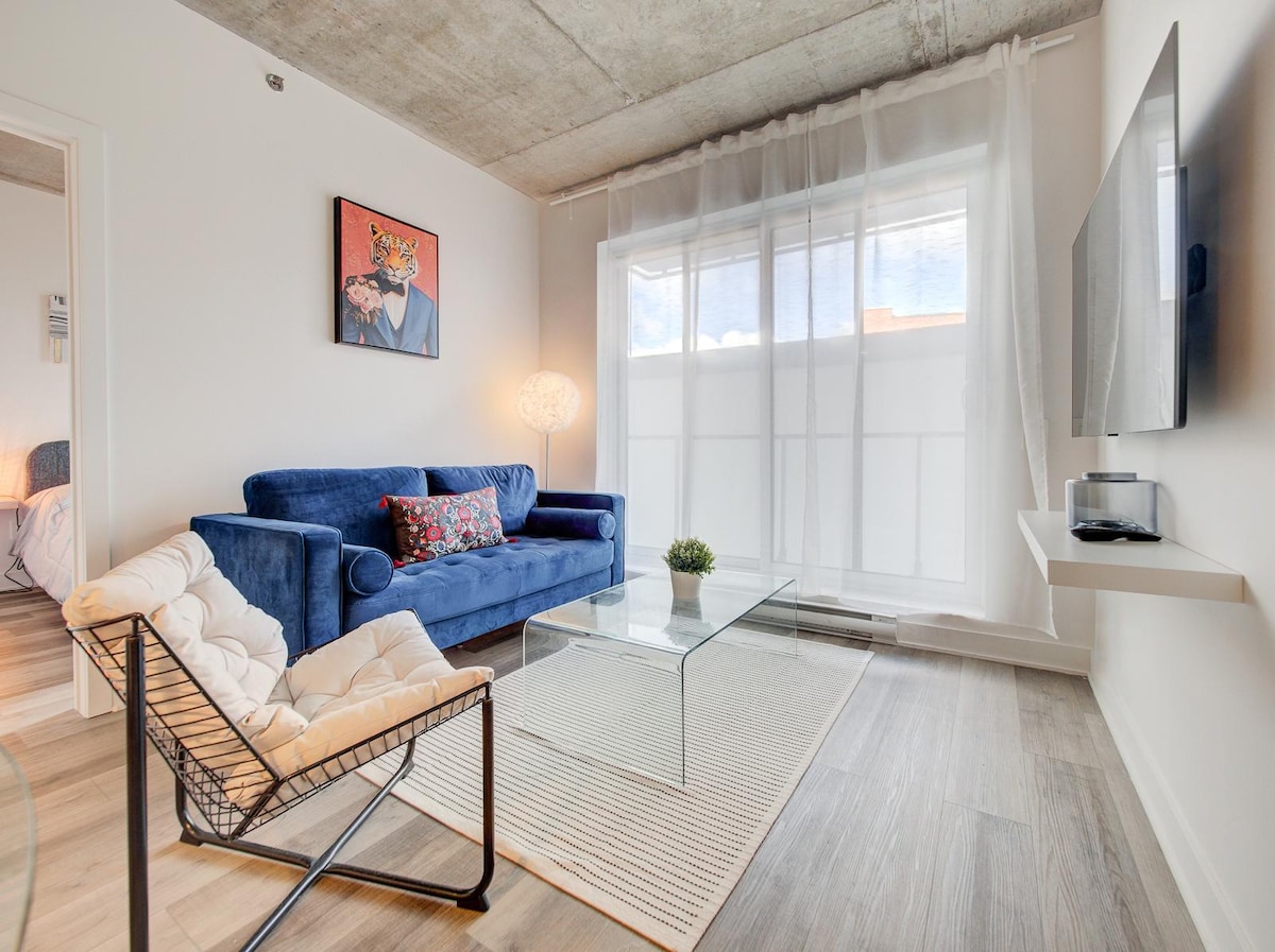 ¡Disfruta de tu estancia en el centro de la ciudad! ¡Nuevo TDC 2 de lujo en el centro con acceso directo al Bell Center! ¡Disfruta de la comodidad de nuestro apartamento de un dormitorio totalmente amueblado y equipado con balcón privado propio! Tu estancia incluye acceso a sauna, piscina, gimnasio, salón panorámico, sala de juegos, salón y terraza con múltiples barbacoas. Aparcamiento subterráneo gratuito, con el metro a pocos minutos. Sin salir, la ciudad es tuya para explorar. Además, relájate con Netflix de cortesía para disfrutar de una estancia perfecta.