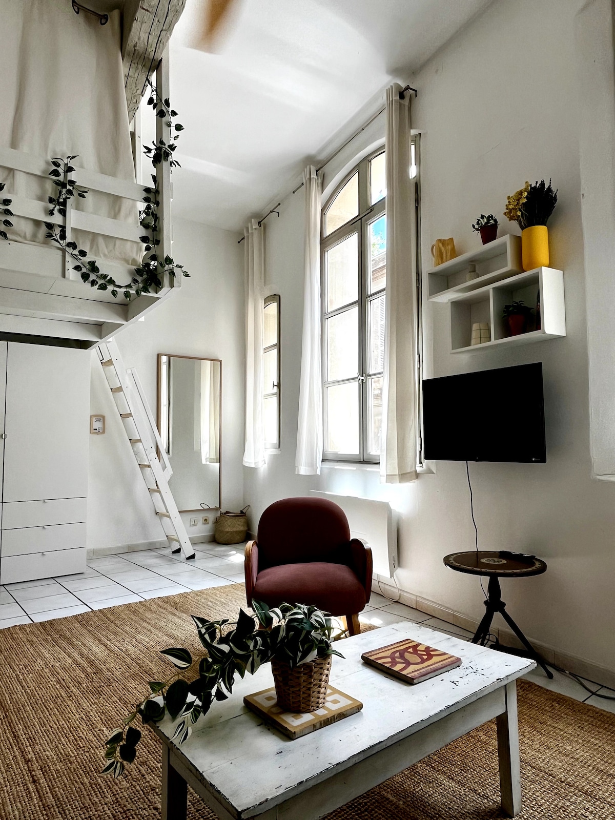 Encantador estudio recién renovado en el centro de la ciudad, a dos pasos del mercado y de las tiendas, en un tercer piso (sin ascensor) y que da a una calle tranquila y agradable. De decoración refinada, el estudio está totalmente equipado : cocina, cafetera Nespresso, tostadora, microondas, etc., TV y conexión internet, secador de pelo, plancha, ropa de cama incluída. También cuenta con colchón nuevo (160), instalado en una bonita mezzanina (entresuelo), y un sofá cama con un verdadero colchón