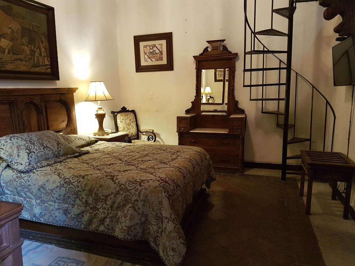 Amplio, aireado y luminoso, Xola 5 ofrece un gran baño privado y su propia sala de estar privada. En la azotea de Casa Xola con hermosas vistas de la Catedral y las laderas circundantes. ¡Hermoso!