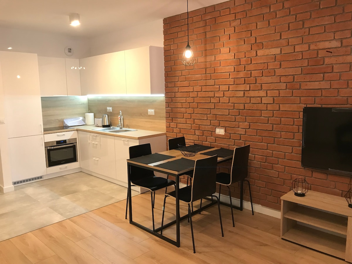 A luxurious loft-style apartment located in an over a hundred-year-old tenement house. Due to the extremely high ceilings and windows you can feel space and light. While designing the interior of our cosy accommodation, we tried to combine comfort with luxury. The bedroom has been separated from the living area, so up to 4 people can comfortably spend time here. The central location of this appartment is an excellent starting point for any excursions.