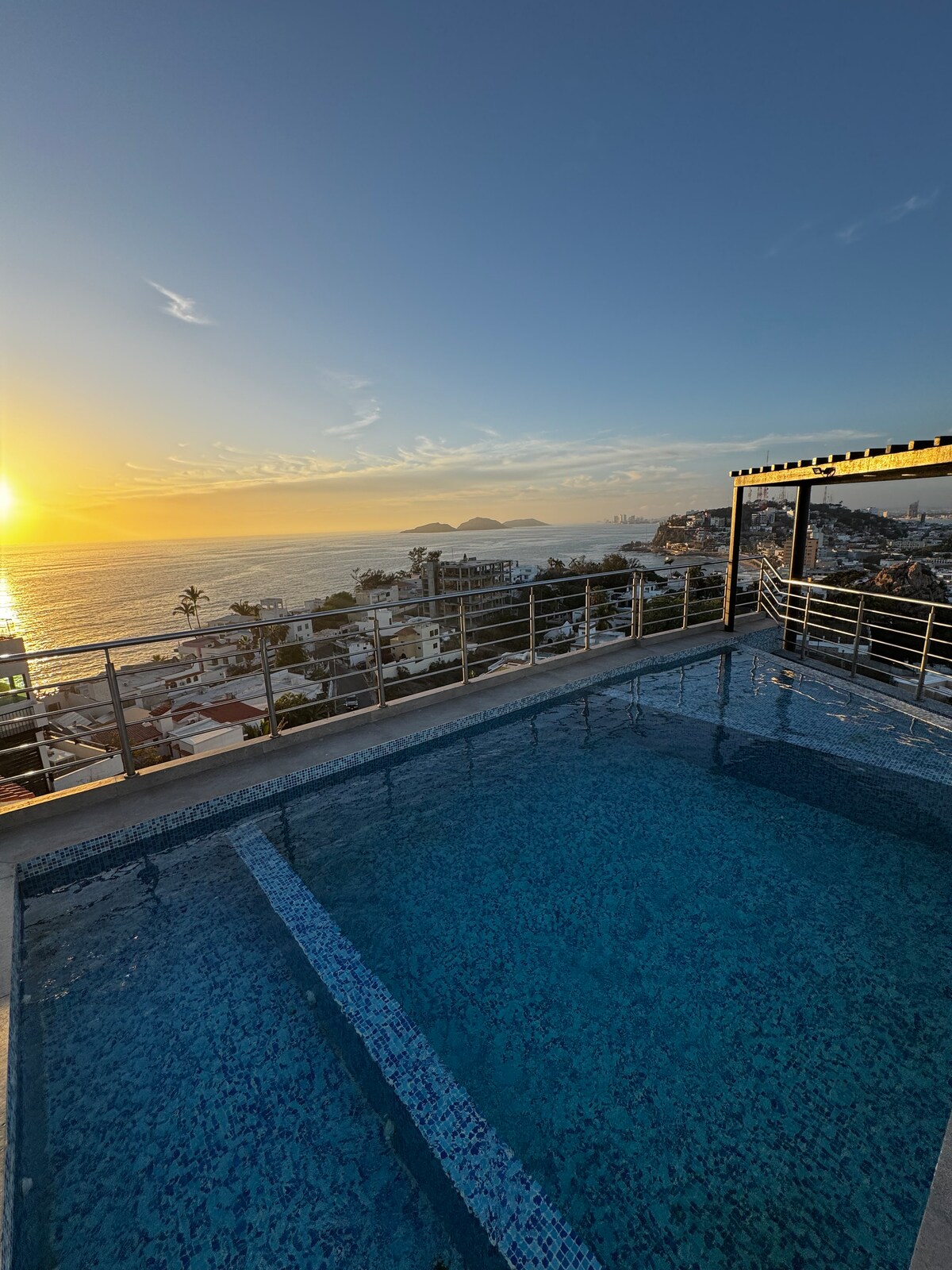 Ocean View en Cerro de la Nevería | Bicis y equipo de playa incluidos. Exclusivo departamento con vista 360° hacia Olas Altas, Centro Histórico y Faro. Disfruta rooftop con alberca panorámica y atardeceres inolvidables. Recorre el malecón en bicicleta y vive la playa con sombrilla y sillas incluidas. Ubicación privilegiada que combina tranquilidad, cercanía a puntos turísticos y la mejor forma de descubrir Mazatlán desde las alturas.