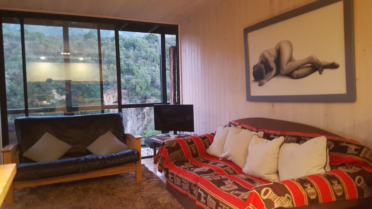 Refugio con Vista Panorámica al Valle Despierta cada mañana con una vista privilegiada del valle, rodeado de un entorno natural que invita al descanso y la desconexión. Lo que ofrecemos: Espacios cálidos y confortables para un descanso pleno. Jacuzzi al aire libre para disfrutar bajo las estrellas. Fogón perfecto para compartir historias o una copa de vino. Entorno natural que invita a caminar, respirar profundo y reconectar.
