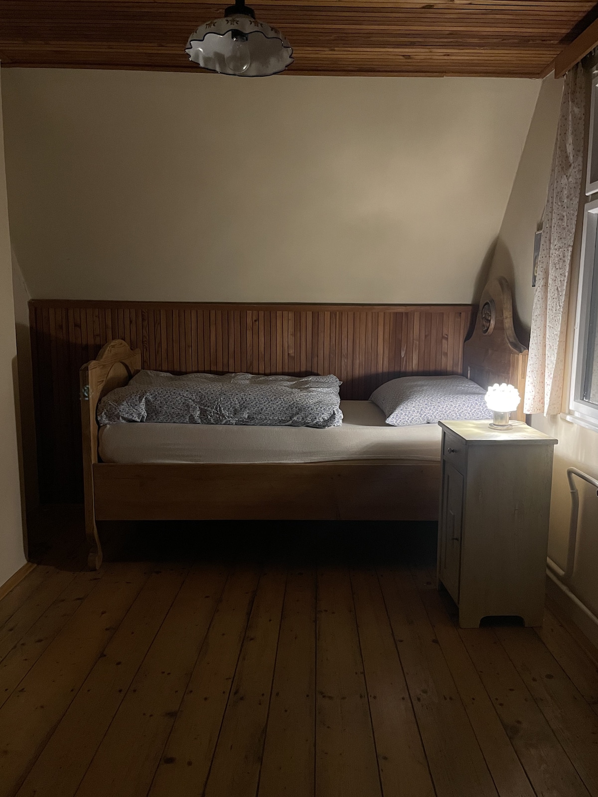 Nabízíme jednolůžkový, útulný pokojíček v našem venkovském domečku, vhodný pro relax, čtení, či práci na vaší cestě. Domeček se nachází v těsné blízkosti lesa, je zde velká zahrada s grilem, ohništěm a jablečným sadem, ve kterém můžeš také relaxovat a na chvíli se zastavit. Pokojíček je vybavený postelí, křesílkem a možné je postavit i pracovní stůl, pokud budeš potřebovat. V domě najdeš také sdílený sprchový kout a toaletu. Také společnou jídelnu i kuchyň, která je ti k dispozici.
