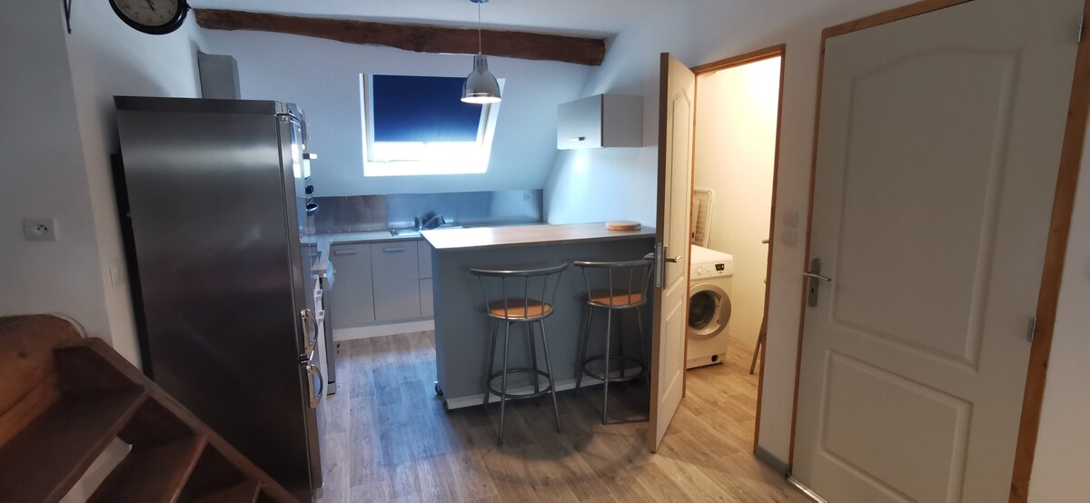 Pequeña casa adosada al propietario, con entrada independiente. Idealmente situado a 2 o 3 km máximo de todos los comercios (Intermarché, Lidl, panadería, estanco y farmacia, etc.), el alojamiento incluye una sala de estar abierta a la cocina equipada con nevera congelador, cocina de gas, lavavajillas, microondas, minihorno, cafetera Tassimo. 2 dormitorios (1 cama doble +1 cama bb) (1 cama doble y 1 cama individual) 1 baño con ducha. Lavadora y wifi, TV de pantalla grande.