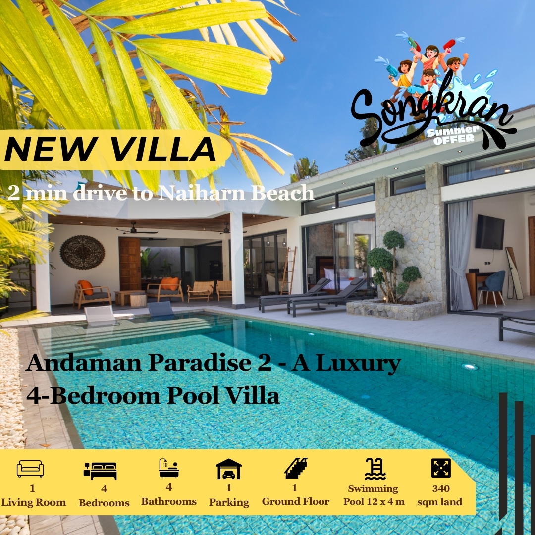Villa Namaste is a renovated private pool villa in quiet residential Chalong, near Big Buddha. Located away from Phuket nightlife (Bangla Road approx. 60 minutes by car), this home is designed for comfort, privacy and calm, ideal for families, couples and respectful small groups. This is a peaceful residential location, not a walkable tourist zone. Not suitable for party or nightlife-focused trips.