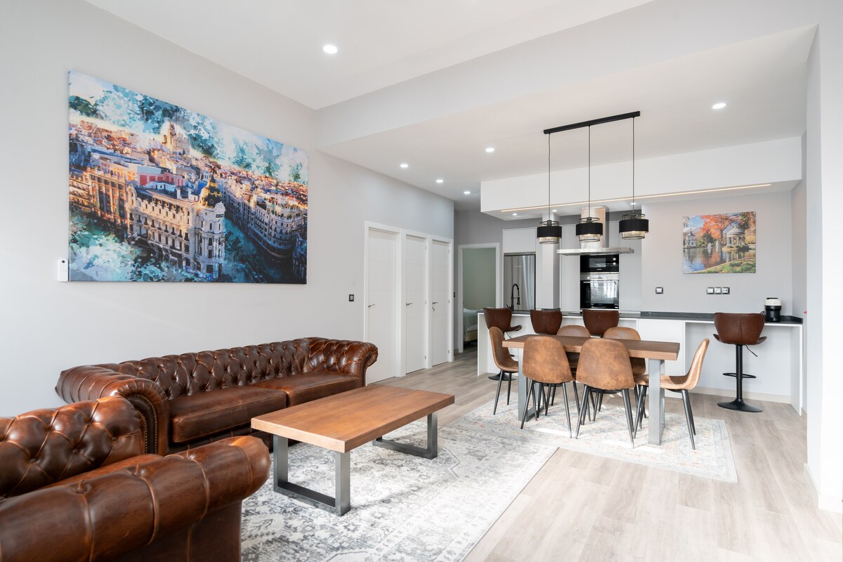 Lujoso apartamento de obra nueva situado en el Centro de Madrid, con entrada independiente, gran salón de 35 m2, dos habitaciones, dos baños, una cama king-size, dos individuales y una auxiliar. Concebido para alojar cómodamente de dos a cinco personas. Ubicación muy bien comunicada, en el mítico barrio de Malasaña. Si lo que estás buscando es privacidad, independencia, lujo o comodidad, este exclusivo apartamento, debería ser el lugar perfecto para tu próxima estancia en Madrid.
