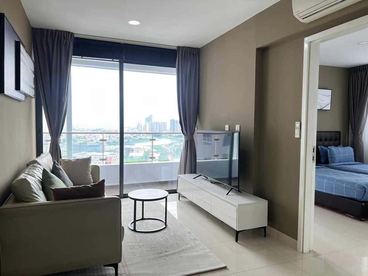 Sencillo en este lugar tranquilo y céntrico. Disfruta de las vistas de la ciudad con excelentes instalaciones. El alojamiento está completamente amueblado y en el piso 21. La piscina, el gimnasio y la sauna están en el piso 29. Es un lugar seguro para alojarse y conveniente para restaurantes, tiendas y supermercados.