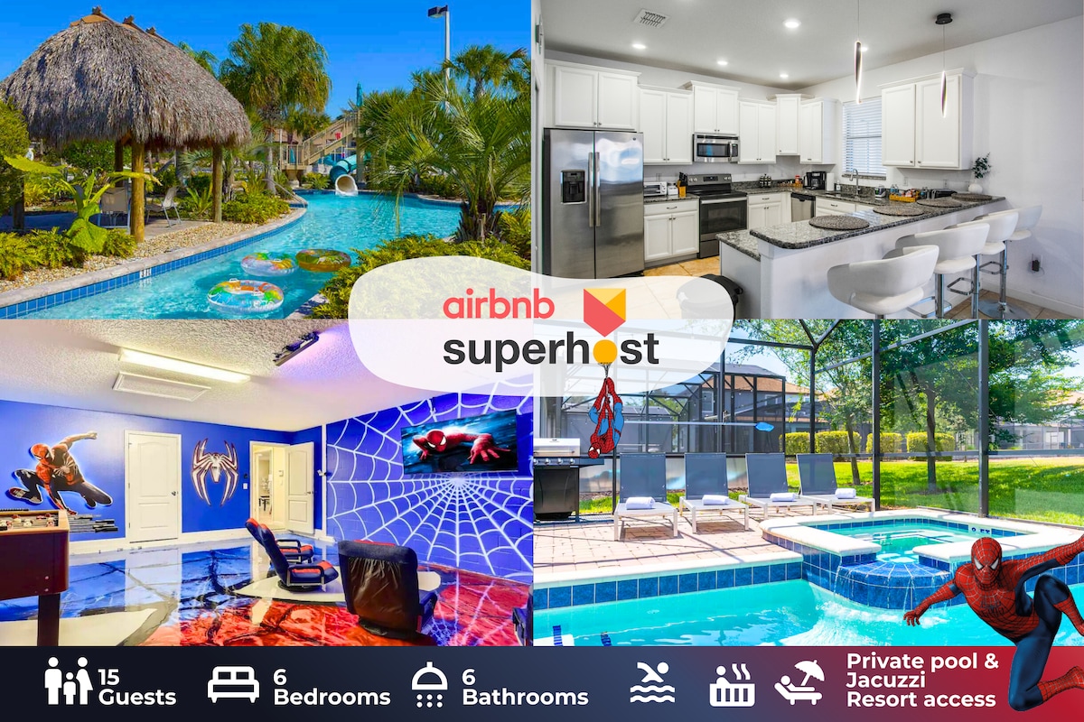 Crea recuerdos para toda la vida en nuestra lujosa casa de siete dormitorios (capacidad para 21 personas) en la principal comunidad de vacaciones de Orlando. Disfruta de tu propia sala de juegos de la cueva de Batman, piscina privada (climatizada sin cargo adicional*) y jacuzzi. Nuestra valoración de 5 estrellas del 100 % de los huéspedes anteriores y nuestra generosa política de cancelación significan que puedes reservar con total tranquilidad. ¡A solo 15 minutos de Disney y a pocos pasos de una fabulosa casa club del centro vacacional con acceso gratuito a una lujosa piscina, parque acuático infantil, restaurante, parque infantil, gimnasio y mucho más!