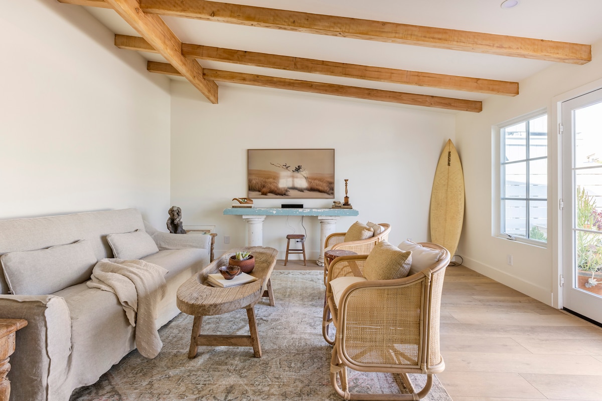 Relájate en este acogedor refugio costero de un dormitorio con brisas oceánicas, un televisor inteligente, un espacio de trabajo dedicado y un espacio privado aislado al aire libre. Los suelos de hormigón pulido con acabado de cera de abeja te conectan con la tierra para una estancia tranquila y reparadora. Se limpia siguiendo las pautas de los CDC con desinfección UVC adicional y un purificador de aire Dyson. Ubicado en una calle tranquila cerca del puerto, playas, surf, atardeceres, avistamiento de ballenas y yoga local. Una plaza de aparcamiento incluida.
