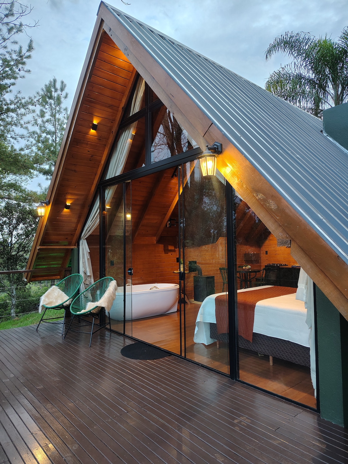 El espacio tiene capacidad para una familia de 4 personas. Piscina climatizada. Una bañera de inmersión en el piso superior. Disfruta de un té, un café o un chimarrão tumbado en la hamaca o en los taburetes de la propiedad con vistas increíbles. La cabaña está a 23 km del centro de Chapecó, con 22,6 km de asfalto y a 12,4 km del puente. * No ofrecemos comida. * Sugerimos restaurantes y tiendas de abarrotes cerca de la cabaña. * No se autorizan fiestas ni eventos. * Pareja o familia permitida + mascota. ¡Conoce y enamórate! 🥰