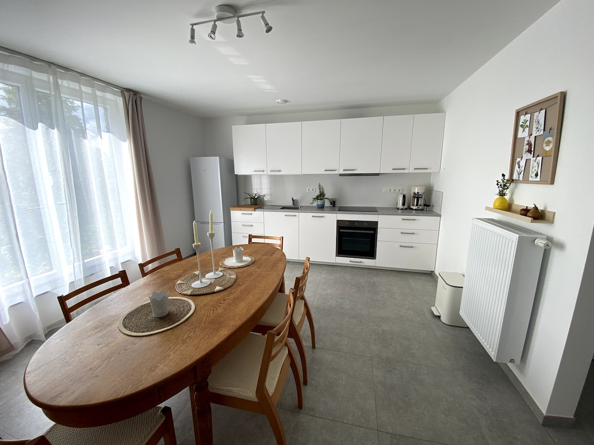 Disfrute de un agradable apartamento (80 m²) en una elegante casa nueva en un entorno verde y tranquilo. Está cerca de Seneffe y Feluy y de las principales carreteras a 30 minutos de Bruselas, a 20 minutos de Mons o del aeropuerto de Charleroi (Bruselas sur). Descubra los canales y castillos, el Museo de Mariemont, el carnaval de Binche, el Plan inclinado de Ronquières y su festival. Reserve una sesión de sauna o un masaje excepcional en nuestra zona de bienestar privada a un precio razonable.