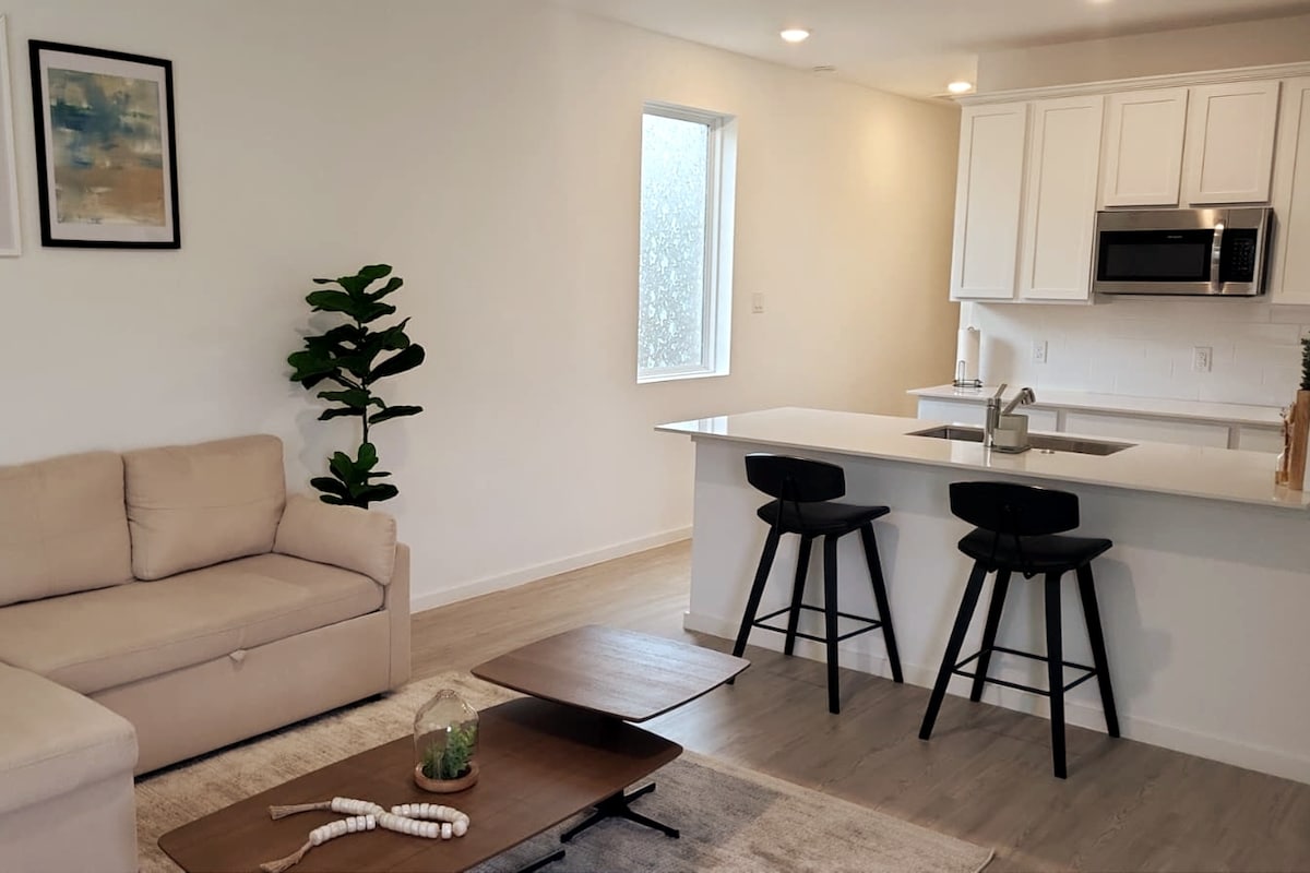 Relájate en este tranquilo y elegante apartamento de 1 dormitorio, ya sea que viajes por trabajo (viajeros de negocios, enfermeras de viaje) o por placer (escapadas de fin de semana). Con fácil acceso a los mejores restaurantes, tiendas y lugares de interés locales, disfruta de este acogedor espacio con wifi rápido, un espacio de trabajo dedicado, acabados modernos, una lujosa cama tamaño queen, baño estilo spa y una cocina pequeña (microondas, lavavajillas, estufa de encimera, nevera-congelador, hervidor eléctrico, platos y utensilios). Nota: Propiedad libre de humo y mascotas.