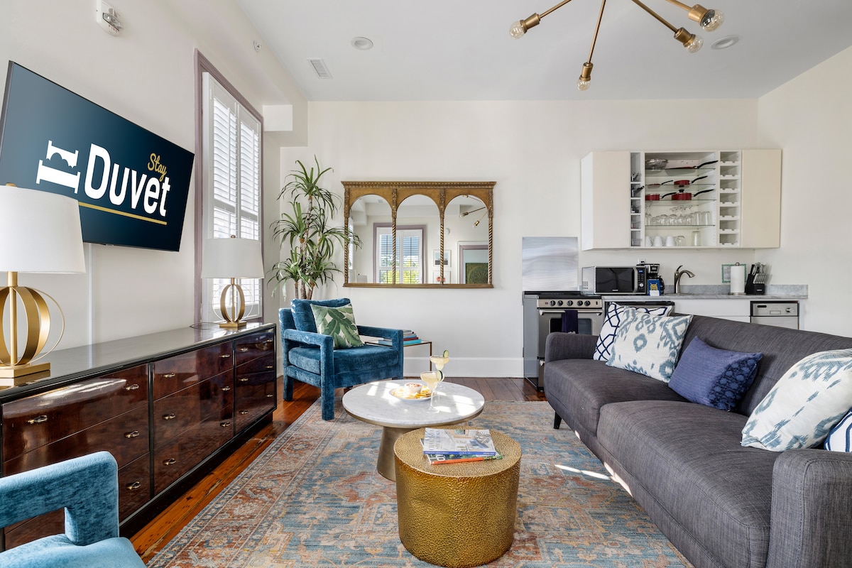 Sumérgete en la vibrante cultura de Charleston desde esta impresionante suite de dos dormitorios, meticulosamente diseñada por un diseñador de interiores profesional. Este paraíso lleno de luz combina el confort moderno con el encanto antiguo, y cuenta con hermosas obras de arte y una selección de muebles nuevos y vintage. Esta escapada de diseño es más que un lugar para alojarse, es una plataforma de lanzamiento para una experiencia inolvidable en Charleston.