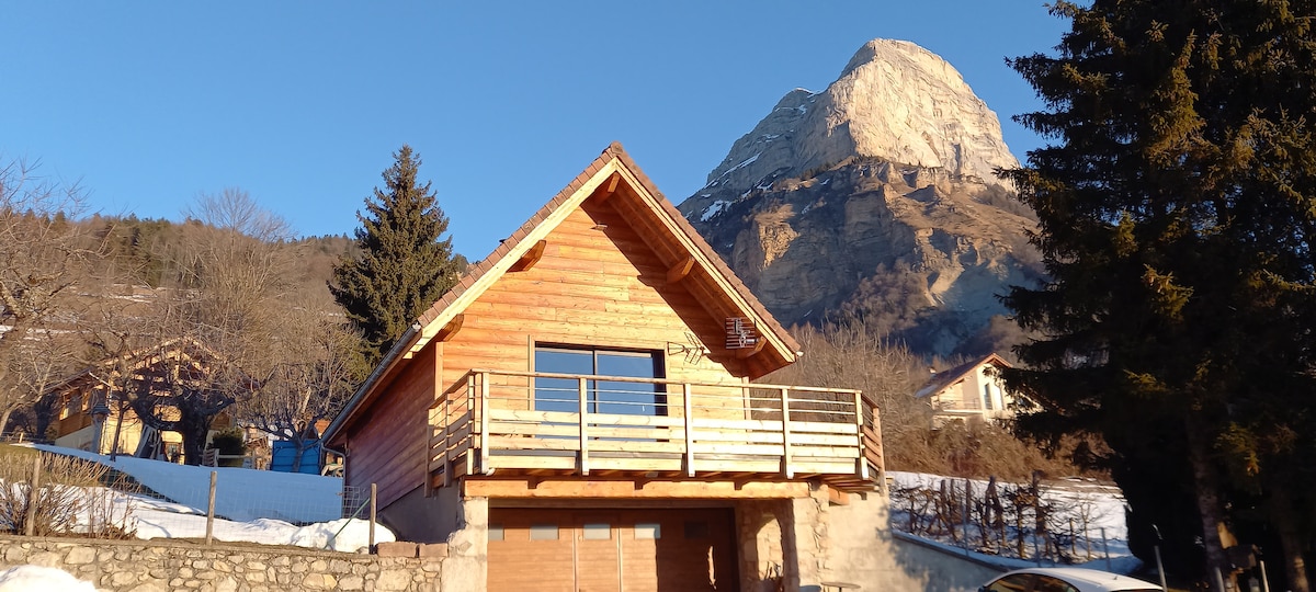 Una vista panorámica impresionante de las montañas desde el balcón, una sala de estar de madera, techos altos, un ambiente que invita a la relajación... El balcón se abre a un terreno en pendiente bordeado por un arroyo, discreto según la temporada con un fondo sonoro, el encanto discreto de las campanas. Una inmersión total en la naturaleza. Habitación íntima, aparcamiento, fácil acceso en cualquier época del año, sala de equipos. Sábanas, toallas, TV, internet de fibra. Check-in libre. ¡Ideal para un dúo en serenidad!