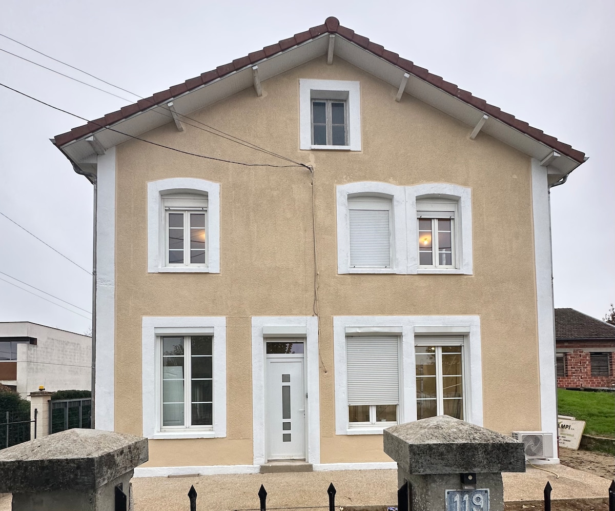 Déjese seducir por el ambiente cálido de nuestra casita que se encuentra en una calle tranquila y cerca de todos los servicios (farmacia, panadería, primeurs, carnicería, estanco, gran superficie, médico..y a 5 minutos a pie de la estación, a 34 km del aeropuerto de Chalons-Vatry) A pocos pasos de las laderas de Vitryat y su visita a la bodega, del famoso lago del Der con su estación náutica, sus playas y su Casino, de nuestra majestuosa catedral, de nuestro magnífico complejo cultural acuático