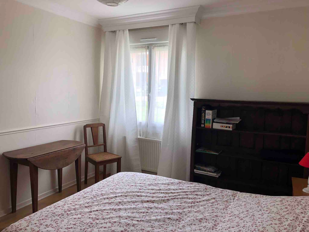 Apartamento en la planta baja, con aire acondicionado, totalmente independiente (llegada autónoma) y consta de un amplio dormitorio: cama tamaño king con TV de 40", un baño con inodoro, cocina abierta a un salón con un sofá cama de 1,60 m de buena calidad con memoria de forma. 1 Ventana con vistas al exterior. El alojamiento dispone de 2 plazas de aparcamiento en un patio cerrado (video). La propiedad tiene un estanque donde es posible pasear y ver🦆🐿️ ardillas proporcionamos sábanas toallas