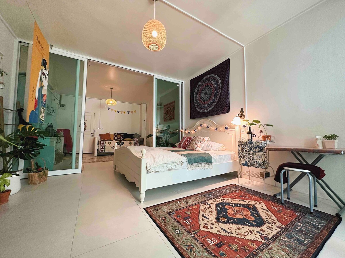Amplia unidad de estilo minimalista de 1 dormitorio, 1 sala de estar, 1 cocina y 1 baño para que hasta 3 huéspedes se alojen cómodamente. A 5 minutos a pie del metro. La higiene y la seguridad son nuestras principales prioridades. Para desplazarse, sin duda es muy fácil, ya que está en el metro y cerca del centro de la ciudad. También es fácil conseguir un taxi (si no prefieres Grab). Para comer, puedes ir cómodamente a la tienda de comestibles de abajo y hay varios restaurantes al otro lado de la calle. El mercado nocturno local está cerca del apartamento.