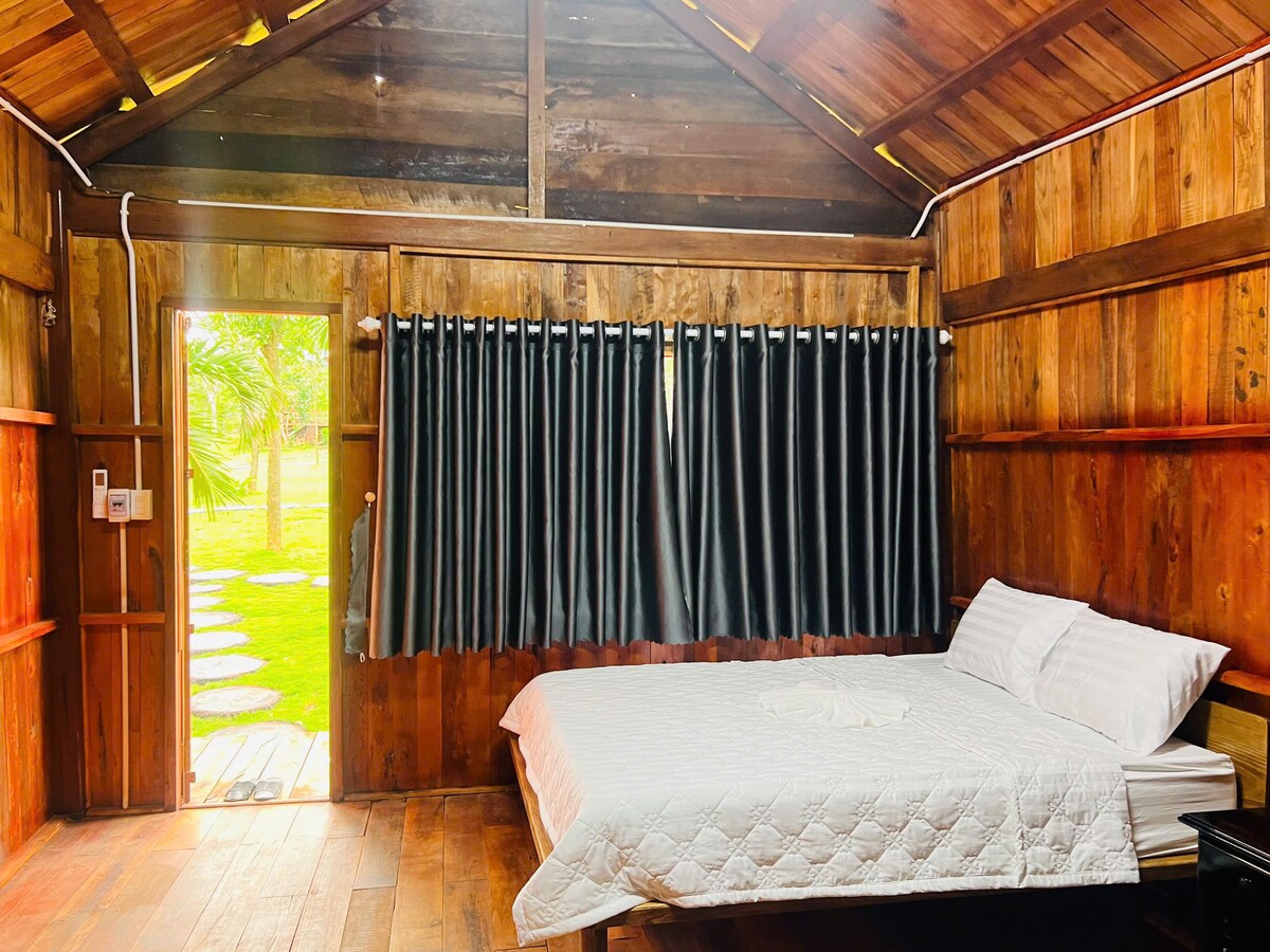 Nuestra querida casa de madera de estilo indochino: • Construimos esta casa por nuestra cuenta a principios de 2018, con madera importada de la región norte de Vietnam. Por lo tanto, es un lugar muy querido para nosotros que nos gustaría compartir con el mundo, especialmente a aquellos que quieren disfrutar de la naturaleza y experimentar la cultura vietnamita. - 1 cama tamaño queen y un colchón en el piso.