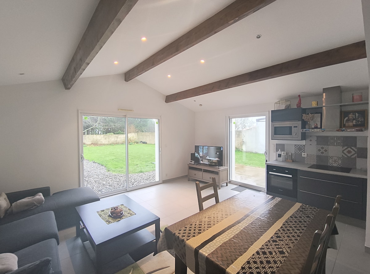 Casa reciente con terraza y zona verde. Es tranquila en el corazón del campo. El entorno es agradable. Se encuentra a 10 kilómetros del mar. (PORNIC) Ponemos a su disposición la ropa de cama y de baño. Todo el material necesario para su estancia está disponible (cafetera, microondas, horno, lavadora, congelador, barbacoa, cocina, nevera, televisión, etc.) El alojamiento está equipado con calefacción por suelo radiante Hay conexión WIFI DISPONIBLE